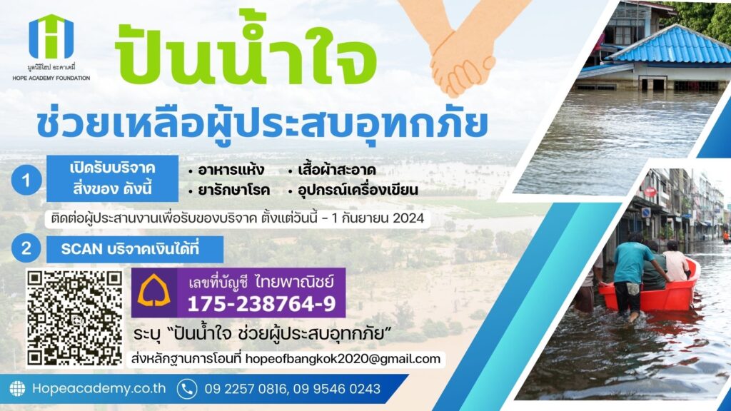 ชื่อบัญชี "มูลนิธิโฮป อะคาเดมี่" SCB 175-238764-9