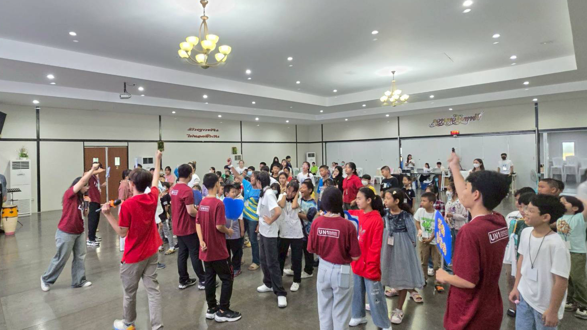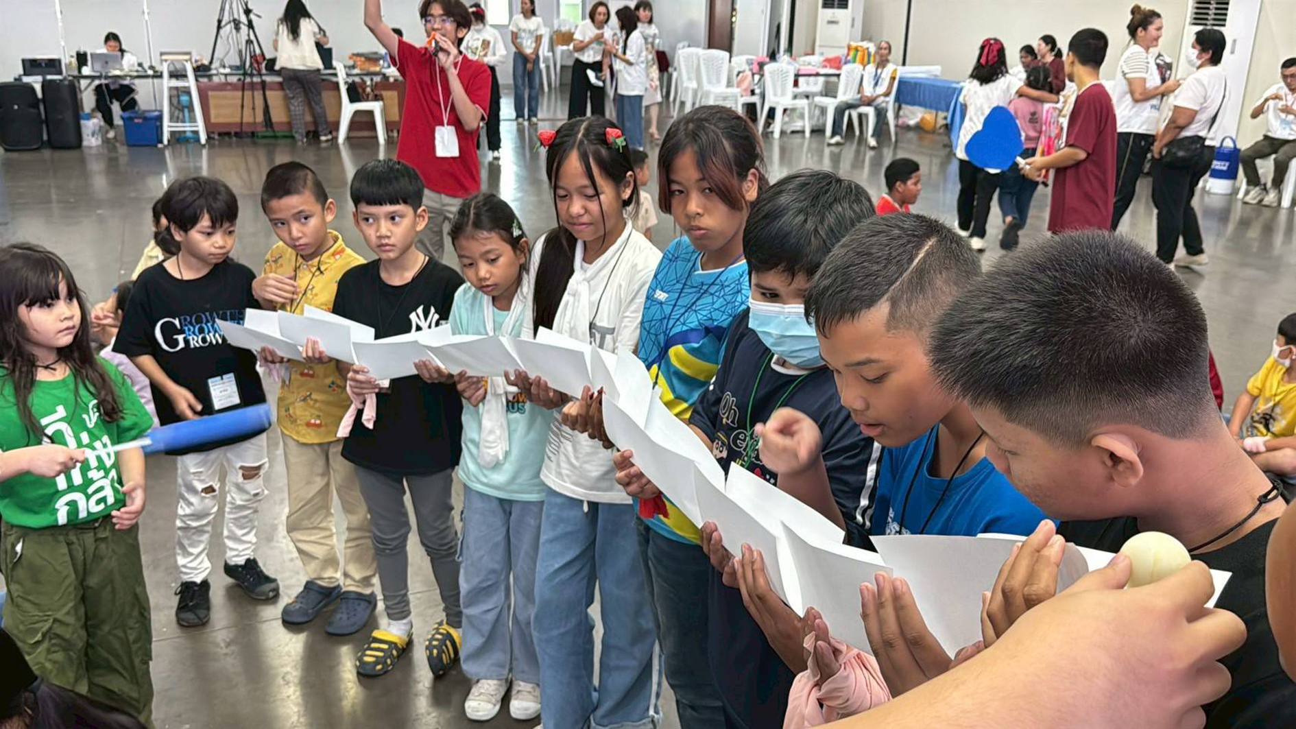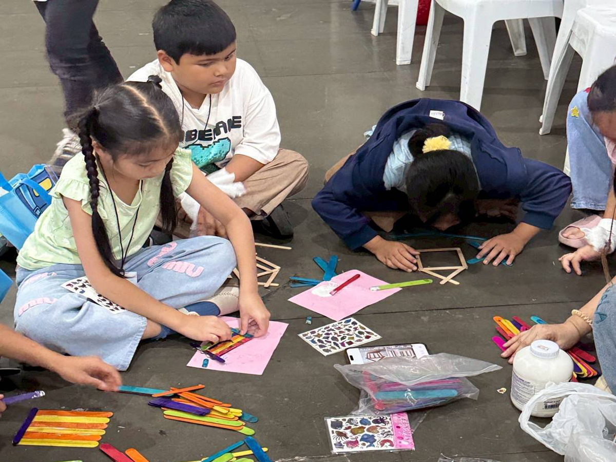 บรรยากาศเต็มไปด้วยความสนุกสนานและอบอุ่น เด็กๆ ให้ความสนใจและมีส่วนร่วมอย่างกระตือรือร้น