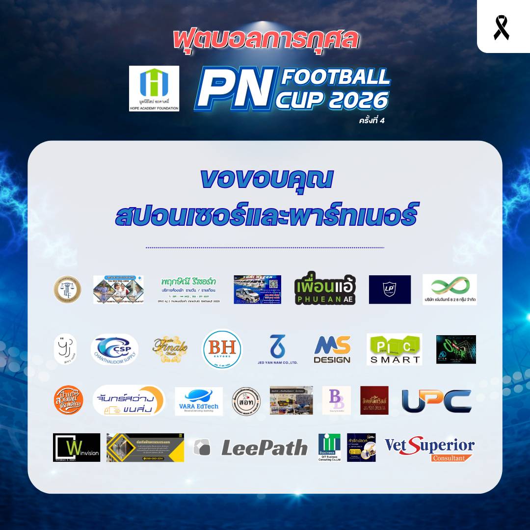 ขอขอบคุณผู้สนับสนุนทุกท่าน การแข่งขันฟุตบอลการกุศล PN Football Cup 2026 ครั้งที่ 4